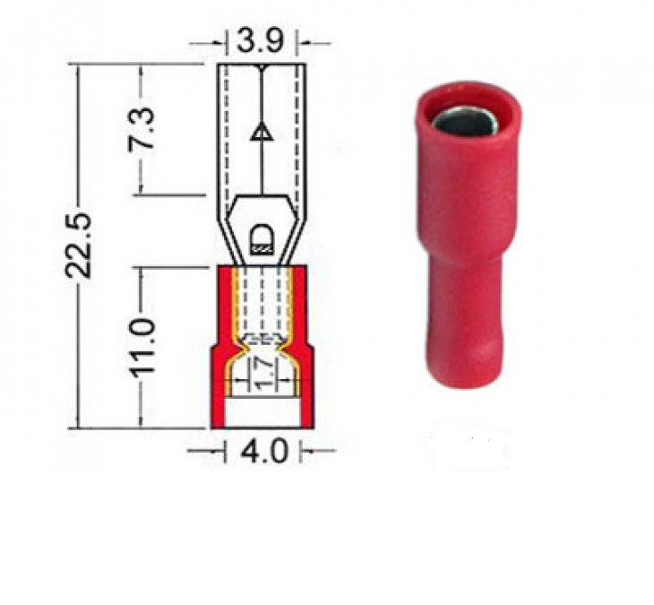 female bullet disconnector(f) 0,5 mm² - 1,5 mm² / 3,9 mm brass electro tin plated