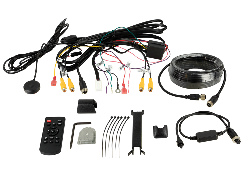 7.2" / 4 video inputs / 1 AHD input / extreme high brightness / split screen / universal bracket including mounting plate to stick at the windscreen