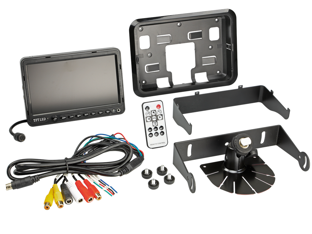Design: Plastic with pedestal, metal bracket and headrest mounting adapter