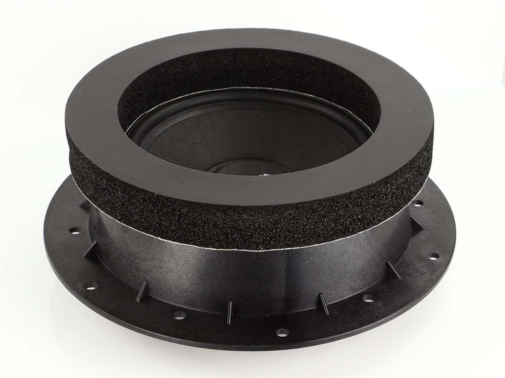 Self-adhesive foam rings are used to seal and guide sound between the speaker and the panelling.