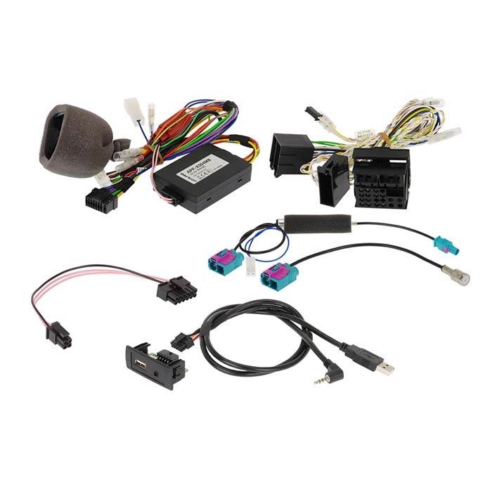 Sættet indeholder interface, antenneadapter og USB- og AUX-adapter.