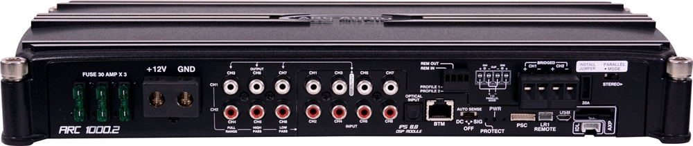 ARC Audio designed the ARC Series for optimum use with premium source units that include crossovers or in DSP controlled systems. As such, these don’t include any crossovers. The ARC 1000.2 includes an active crossover adjustable from 50 to 500 Hz. The three pairs of outputs next to the RCA inputs provide full range, high-pass, and low-pass outputs to drive additional channels of amplification. Another way the new ARC Series amplifiers set themselves further apart from the competition is their compatibility with the brand new ARC Audio IPS 8.8 DSP Module. By removing eight screws on the bottom of any of the amplifiers, the 8-channel IPS 8.8 DSP (Sold separately) module replaces the analog input board that comes with the amp. With dual signal mixers, advanced crossovers, precise signal delay, 248 bands of equalization and full compatibility with the ADS Maestro AR amplifier replacement modules (Sold Separately); the IPS 8.8 establishes a new benchmark for mobile signal processing, OEM integration flexibility, and precision system tuning capabilities.