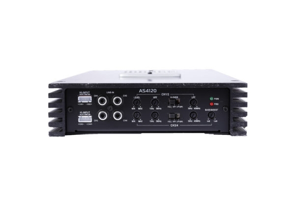 Powerful 4-channel amplifier also suitable for driving a subwoofer in a bridged mode!