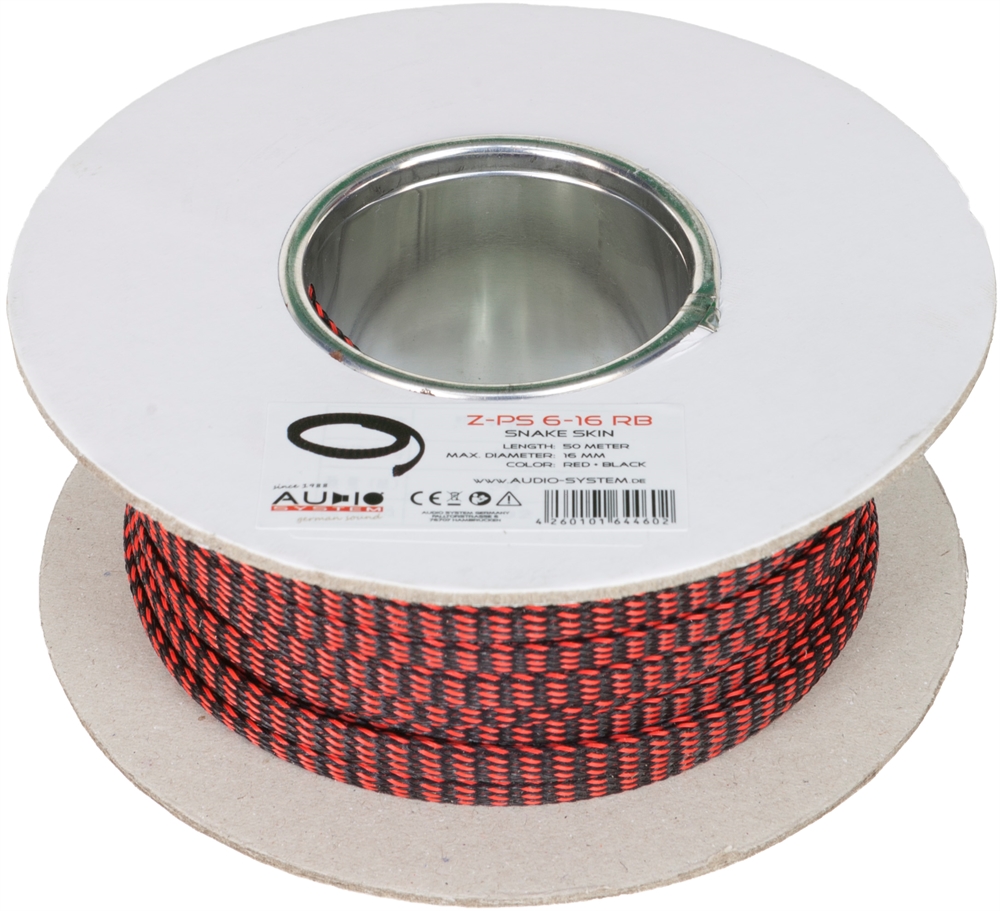 AUDIO SYSTEM PROFESSIONAL BRAIDE SLEEVE braided sleeve diameter: from 6 to 16 mm color: red/black, length of the roll: 50m