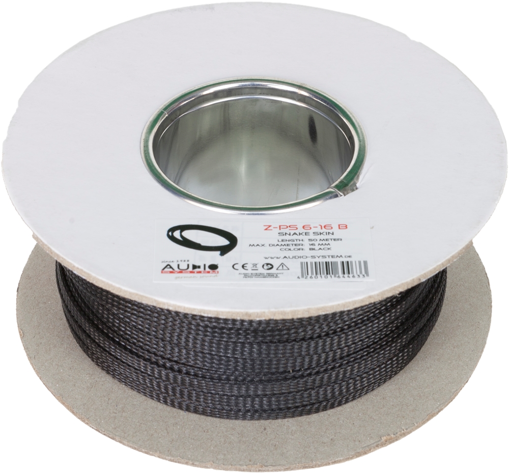 AUDIO SYSTEM PROFESSIONAL BRAIDE SLEEVE braided sleeve diameter: from 6 to 16 mm color: black, length of the roll: 50m