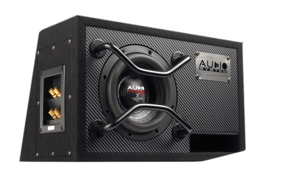 x--ion-SERIES EVO LONG STROKE Woofer Box 10 l vented box with CARBON design2x 250/150 wattvery strong box built with MDF and 33 mm double front panel impedance: 2x 2 Ohm size: l = 415 mm · h = 260 mm · t1 = 150 mm · t2 = 230 mm