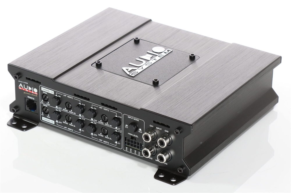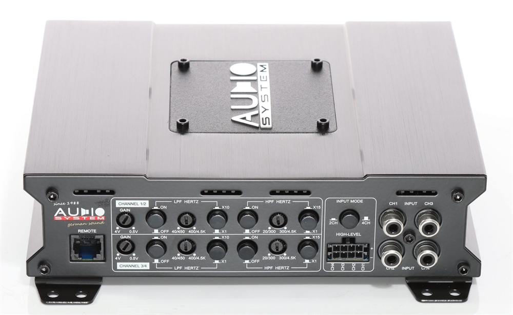 4-channel power-amplifier with SMD technology, variable -switchable subsonic, variable switchable Subsonic, HP, LP, BP filter and full active mode possible, PUMPER limiter, up to 86% efficiency possible, remote control RTC (optional), RCA-high-level-input with automatically "TURN ON"