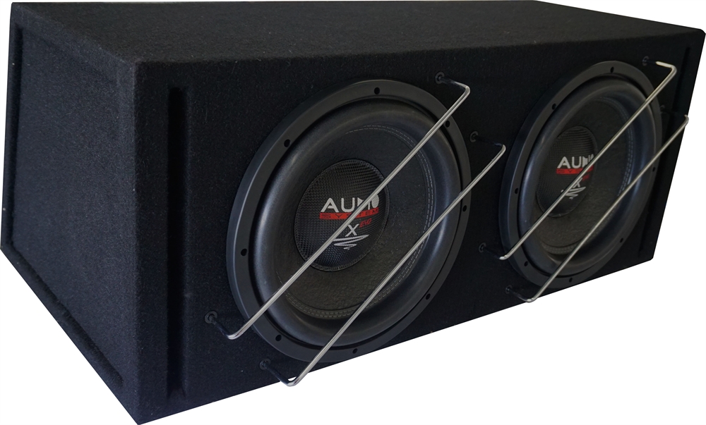 x--ionSERIES EVO LONG STROKE Woofer Box 2x 42 l vented box with 2x X 12 EVO 2x !500/71000 Watt very strong box built and 25mm MDF front panel impedance: 2x 1 Ohm l = 880 mm · h = 360 mm · t1 = 340 mm · t2 = 470 mm