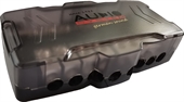 HIGH-END 4x Mini ANL + Ground Block -plus-input/output-block: 2x 25 to 50 qmm -plus-output after 4x ANL fuse: 4x 10 to 25 qmm -ground-input/output-block: 2x 25 to 50 qmm -ground-output: 4x 10 to 25 qmm -attractive noble design with blister package -170x40x100mm