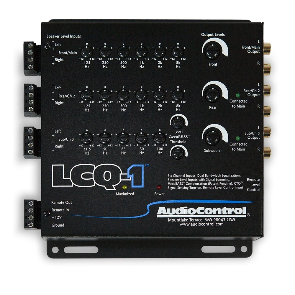 Audio enthusiasts can now rejoice with the introduction of AudioControl’s LCQ-1, a powerful six-channel signal processor that provides a gateway between factory installed source units and after-market amplifiers. The LCQ-1 allows Mobile Electronics enthusiasts to easily “tune” their audio systems and receive truly amazing sound quality. An ideal combination of discrete equalization controls combined with AudioControl’s unique OEM integration circuitry, the LCQ-1 maximizes the performance of factory installed audio systems. Enthusiasts, who want amazing audio performance that only comes from custom-tuned audio systems, will truly enjoy the LCQ-1.