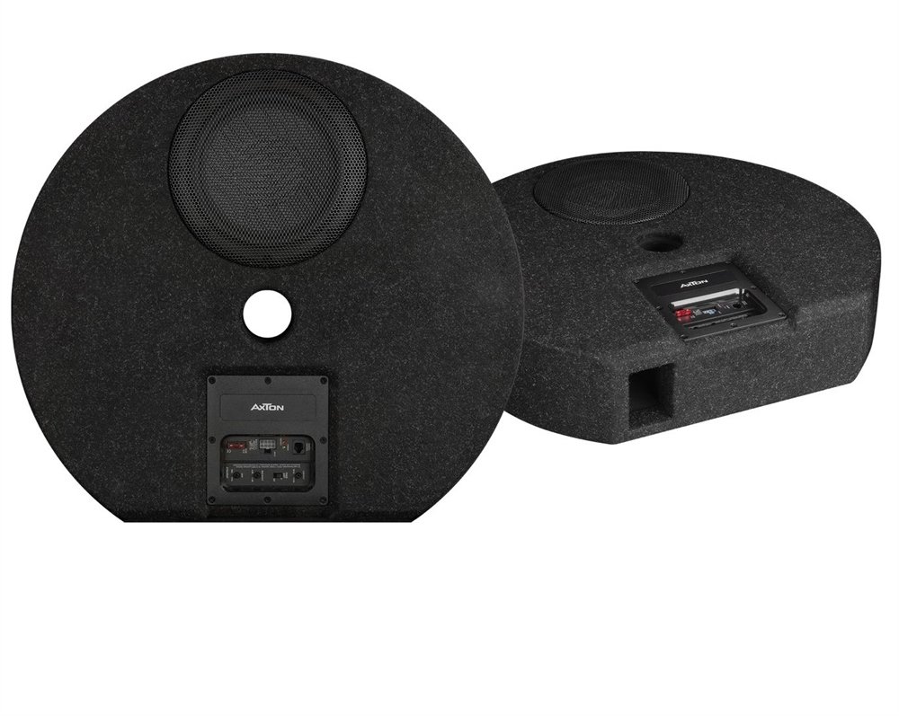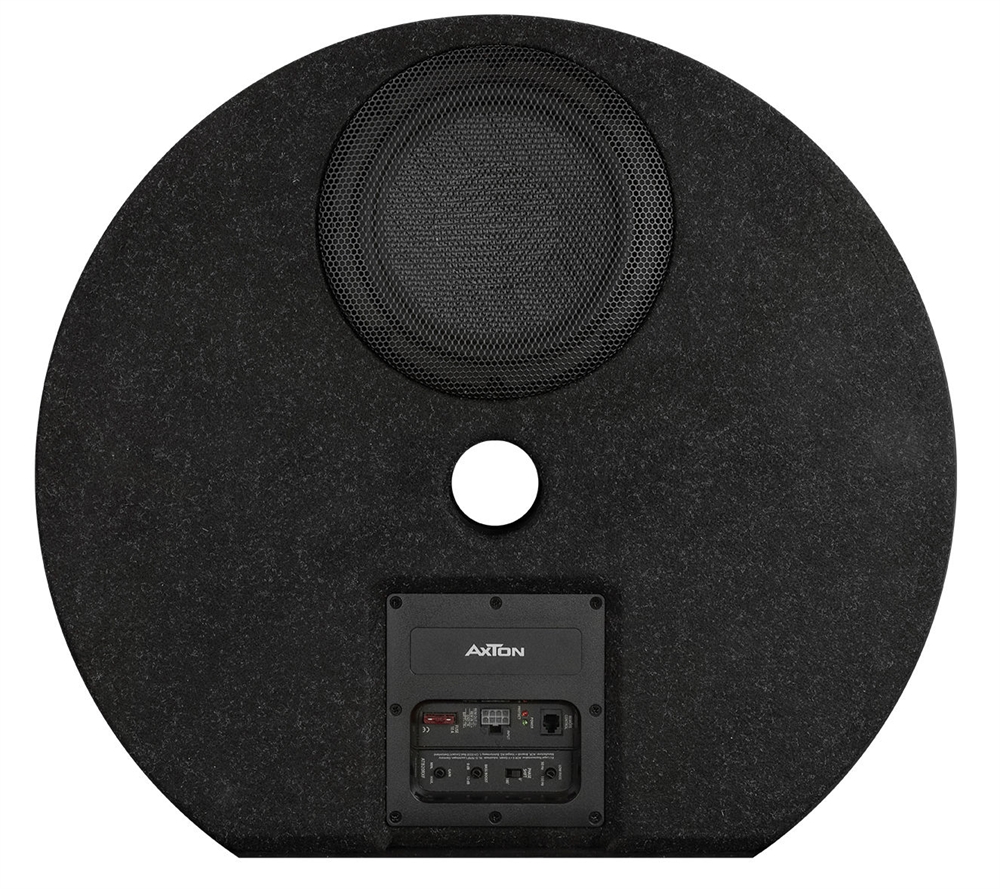 ATB20RXF is the round, extra-flat subwoofer for the spare tire well. With a height of just 125 mm, this bass even fits into almost all emergency wheel wells or intermediate floors of current trunk designs. The well thought-out cabinet construction combines stability, minimal space requirements and low weight in a powerful product design with impressive bass quality. The 100 W RMS amplifier module is located user-friendly on the top of the subwoofer. This means that all settings such as low-pass filter, phase shift, gain and bass boost can be conveniently made. The high-level inputs with auto turn-on function are helpful for connection to OEM radios (without REM output). With the bass level remote control, the level is conveniently dosed from the driver's seat.