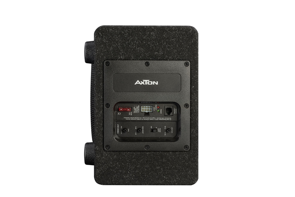 The active version of the “Cube“ subwoofer, equipped with a 20 cm chassis and reflex channel, fits in almost any trunk or even between the seats of a larger driver‘s cab, such as in the VW T5, or under the passenger seat of the Fiat Ducato and Mercedes Sprinter. The selection of components and the precise tuning of the reflex channel are the basis for the level stability and dynamics of the ATB120QBA. The bass box therefore impresses not only with its compact installation dimensions, but also with its sound: AXTON's new subwoofer underpins every piece of music with a rich, melodious bass that can also really pack a punch. The stiff fiberglass / paper sandwich membrane also has a major influence on the convincing sound of this compact sub. The 100 W RMS amplifier module sits user-friendly on the side of the subwoofer - all settings such as low-pass filter, phase position, gain and bass boost can be easily made. The high-level inputs with auto turn-on function are helpful for connection to factory radios (without REM output). With the bass level remote control, the level is conveniently adjusted from the driver's seat. The ATB120QBA is a very good choice - for small and large vehicles!