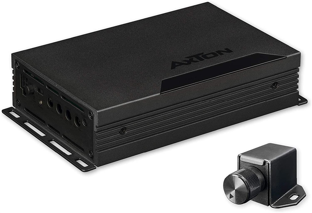 For those who want to upgrade their music system with a compact but powerful quality amplifier, car audio specialist AXTON has the 1-channel power amplifier A101 in the program: Minimal 10.5 cm wide and 4 cm high, this amplifier offers a lot of power in the smallest space. Thanks to the compact dimensions, the Class D amp can be flexibly installed in the car, motor home or caravan. The black aluminum housing is first-class processed and thoughtfully designed: Despite the compact dimensions, the massive heat sink conducts the heat specifically to the outside and thus ensures an optimal operating temperature throughout. The amplifier circuitry and the PCB layout are optimized for lowest distortion and exclusively equipped with selected components. The A101 is 1 ohm stable, extending the range of applications. With 600 W RMS @ 1 Ohm, the bass amplifier not only makes subwoofers sweat. The mono amplifier has an integrated 12 dB/oct. low-pass filter (continuously adjustable from 50 - 250 Hz), a 12 dB/oct. subsonic filter (continuously adjustable from 10 - 55 Hz) and a bass boost control @ 45 Hz (0 - 18 dB). In addition, there are high-level inputs with auto-turn-on function for connection to original radios without RCA output - so the amplifier can be easily combined with factory-installed radios. A bass level remote control is included.
