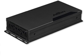 For those who want to upgrade their music system with a compact but powerful quality amplifier, car audio specialist AXTON has the 4-channel power amplifier A401 in the program: Minimal 10.5 cm wide and 4 cm high, this amplifier with 4 x 100 watts offers a lot of power in the smallest space. Thanks to the compact dimensions, the Class D amp can be flexibly installed in the car, motor home or caravan. The elegant, black aluminum housing is first-class processed and thoughtfully designed: Despite the compact dimensions, the massive heat sink conducts the heat specifically to the outside and thus ensures an optimal operating temperature throughout. The amplifier circuitry is designed with care, the design of the board layout is optimized for low distortion and equipped exclusively with selected components. Due to the sophisticated interaction of all components, this high-quality amplifier plays at the highest level: The A401 reproduces every piece of music with transparency, gripping dynamics and, above all, genuine joy of playing. The integrated electronic crossovers, each with 12 dB/oct. slope, are continuously adjustable from 40 - 400 Hz and can be switched as high-pass or low-pass filters. In addition, there are high-level inputs with auto-turn-on function for connection to original radios without RCA output - so the amplifier can be easily combined with factory-installed radios.