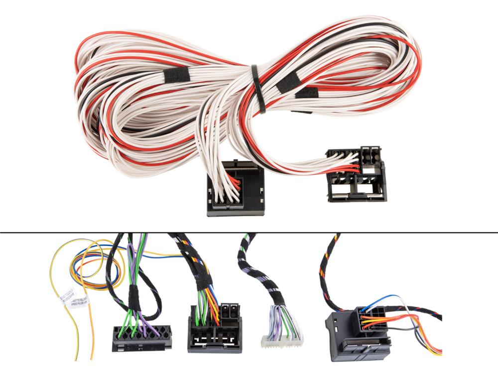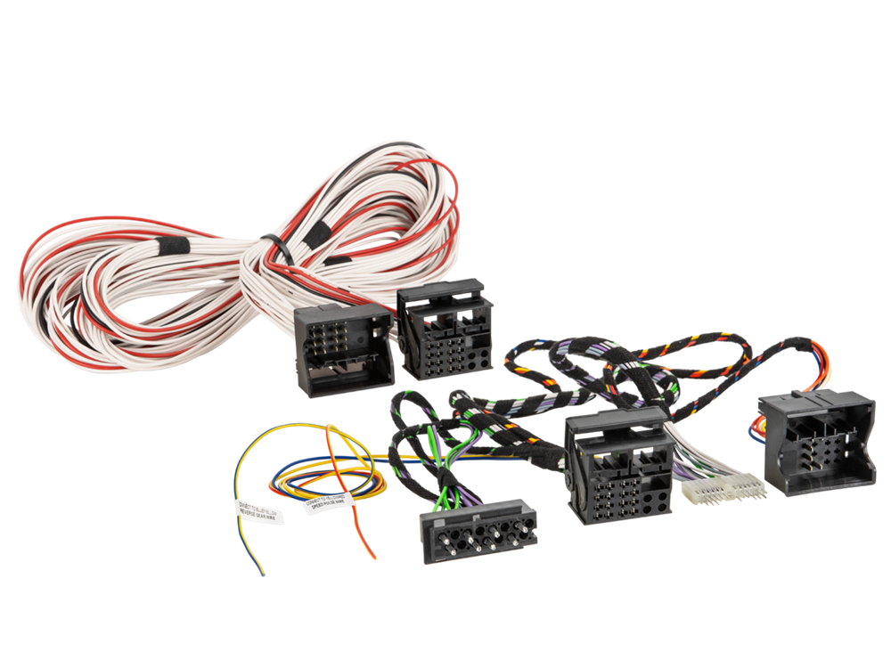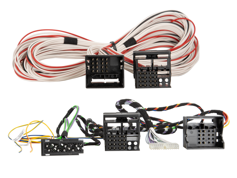 Extension cable for converting a BMW Professional OEM Sat Nav or a Land Rover High Line and Basic OEM HU, each with a DSP OEM amplified system, to a universal retrofit HU.