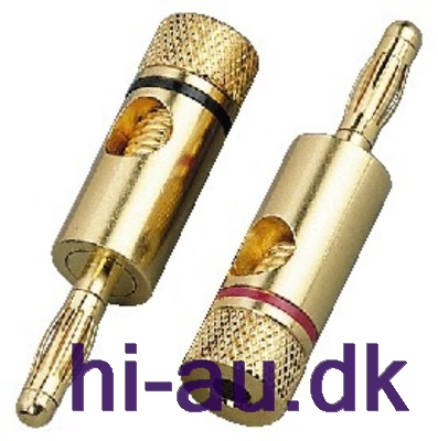 4mm, with spliced contact, gold-plated high-end version, cross hole for accepting cables up to: Ø 7mm. The cable pressing screw has a mounting hole of Ø 4mm for accepting an additional banana plug.