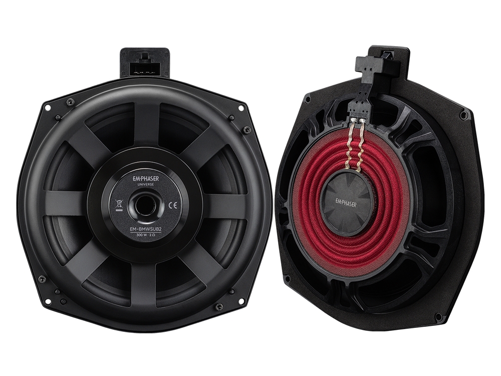 The hard and torsion-resistant aluminum cone enables responsive bass reproduction and is the guarantor for the precise and powerful low bass quality of the EM-BMWSUB2.