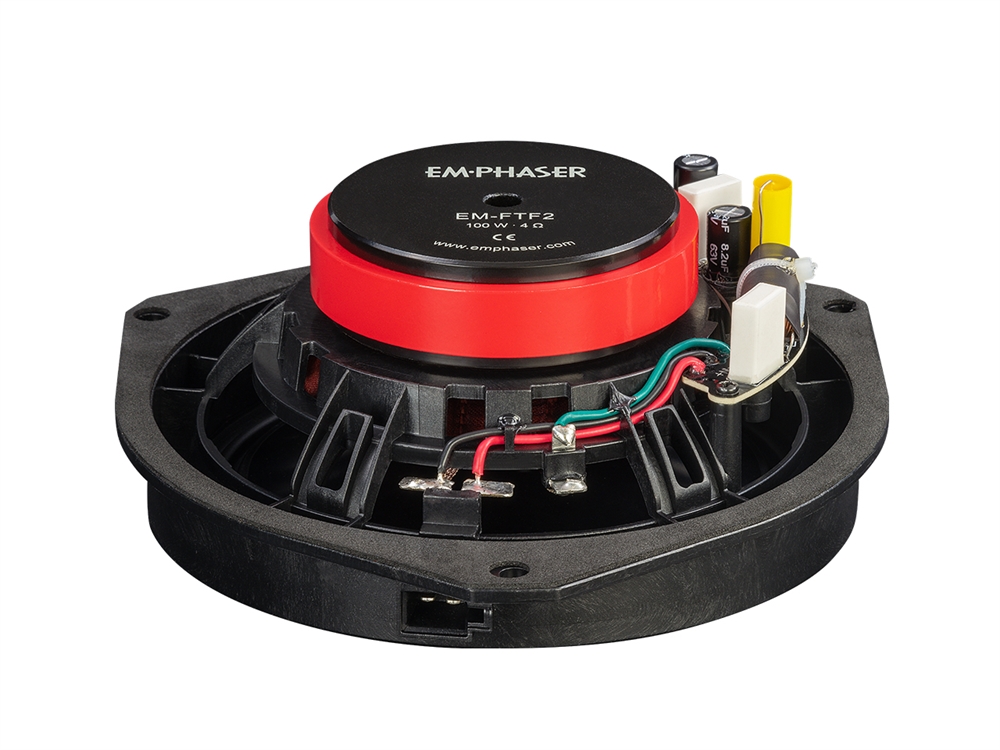 The new EM-FTF2 benefits from the technologies of the successful EMPHASER Monolith component systems: Cambridge surround for high linear excursion of the membrane, Faraday copper cap for a stable magnetic field and the aluminum membrane with its natural sound.
