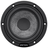 High-end 80 mm (3 inch) midrange driver with carbon fleece sandwich diaphragm, anodized aluminum dustcap for optimized heat dissipation. The powerful neodymium magnet in combination with the stiffened and optimally ventilated die-cast aluminum basket result in an ectra-class midrange driver. Symmetrical stranded wire, 25 W RMS, 40 W music power handling, 4 Ohm impedance and a characteristic sound pressure of 86 dB. Manufacturing and development Made in Germany.