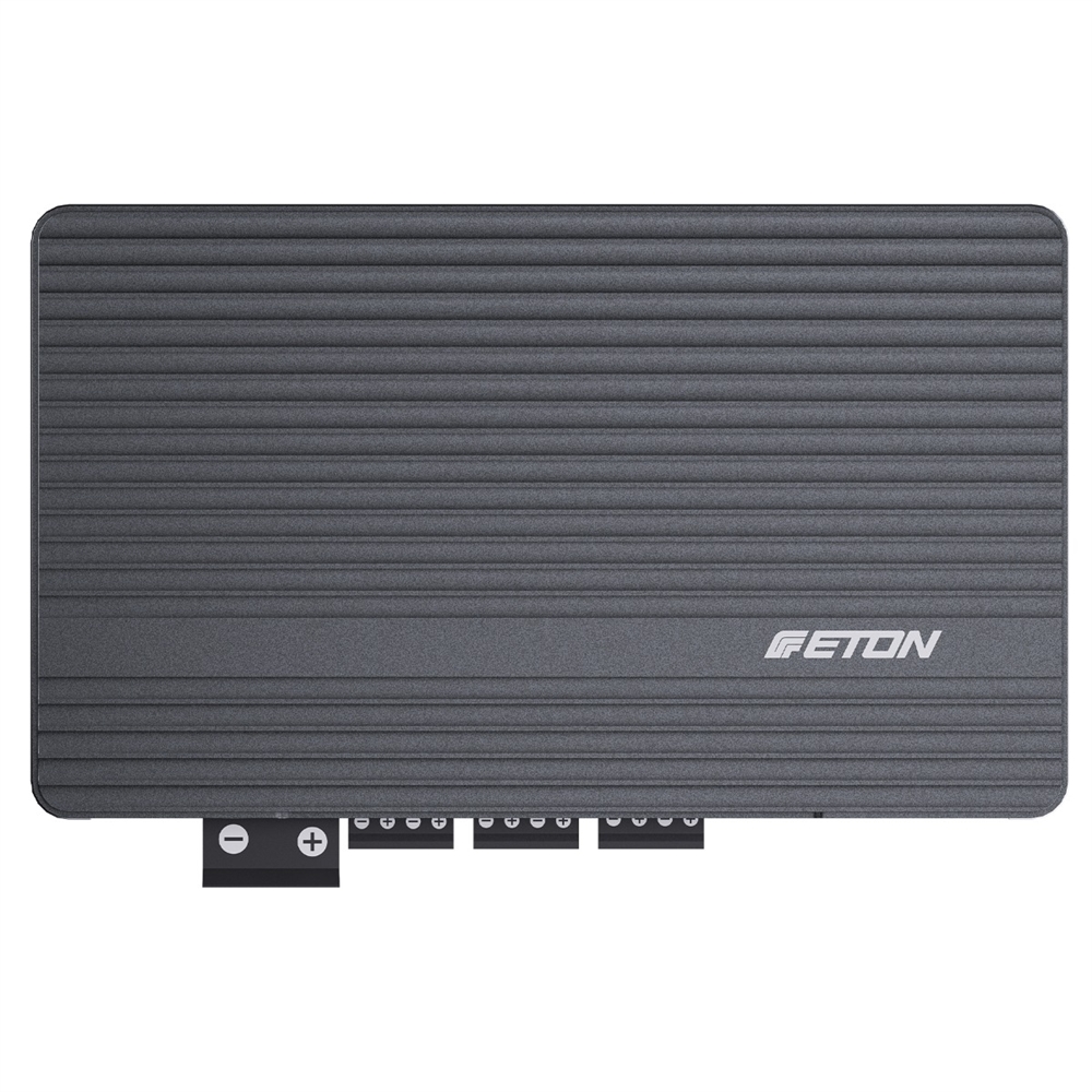 State-of-the-art Advanced Class-D amplifier technology in a smart installation dimension of just 270 x 160 x 51 mm. High-quality die-cast aluminum housing in gunmetal finish. High-performance 6-channel amplifier with 6 x 120 W RMS at 4 Ω, 6 x 225 W RMS at 2 Ω and 3 x 450 W RMS at 4 Ω bridged, signal-to-noise ratio 91 dB, damping factor @ 4 Ω >165, Ultra Low-THD+N 0.003 @ 5 W 1 kHz, active filter high-pass CH 1/2: 15 - 300 Hz | 300 - 6000 Hz, CH 3/4 & CH 5/6: 15 - 300 Hz, Active filters low pass CH 3/4: 30 - 300 Hz | 300 - 6000 Hz, CH 5/6: 30 - 300 Hz, Auto Sense-On function: SIG / DC, 6 x high level inputs, 6 x low level inputs (RCA), High level input signal voltage: 1 - 15 V | 15 - 40 V, High-level input resistance: 10 | 150 | 600 Ω, adjustable gain per channel 0.45 V - 6 V, switchable audio signal source, removable connection plugs (power and audio signal), removable aluminum cover (ETON logo rotatable 180° upside down), integrated adjustment tool for active filter and gain settings, LED status lightbar, stacking function of several amplifiers, hidden mounting by means of blind holes or easy mounting by means of removable and adjustable mounting feet, incl. Level remote control, high-level cable adapter, mounting feet and fixing screws. Engineered in Germany.