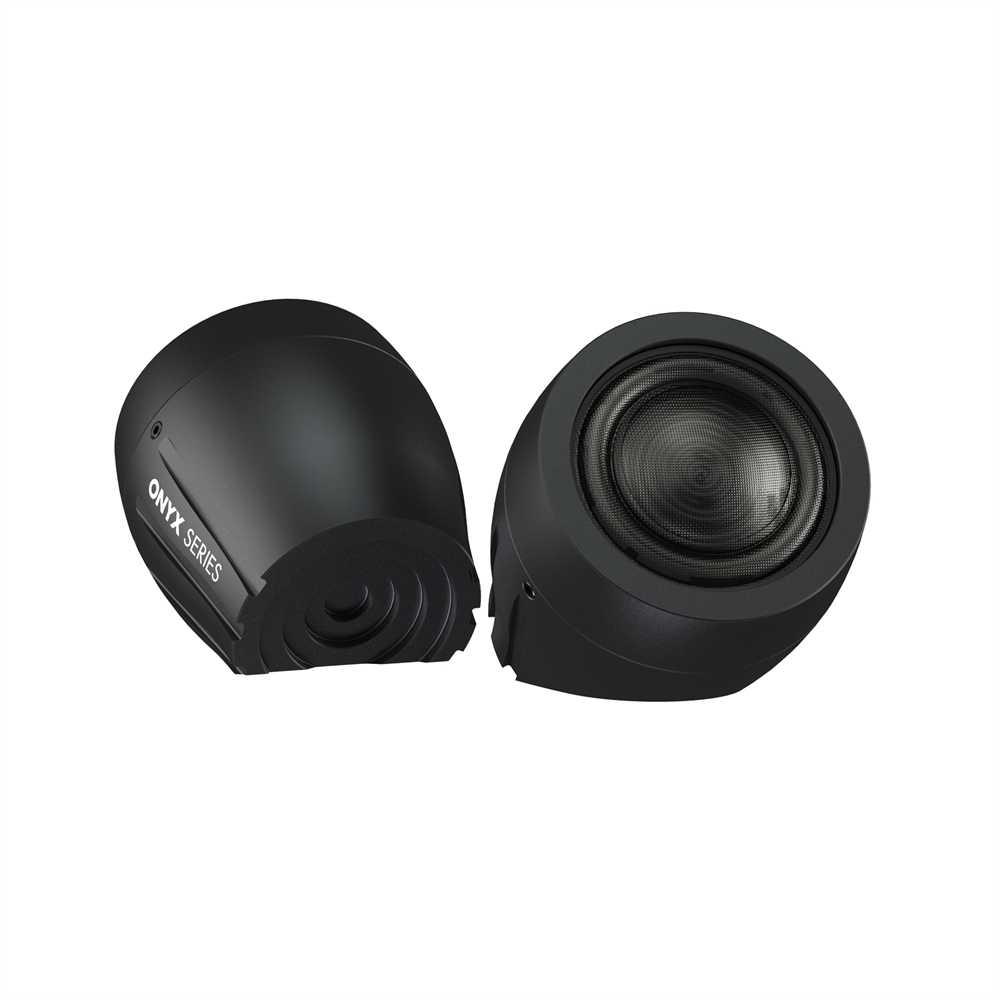 ONYX 28 – High-end 28 mm (1") tweeter with reinforced, asymmetrical coupling volume. Hand-coated fabric dome tweeter with multi-stage ventilation. Anodized high-end surface-mount and flush-mount housing made of glass bead blasted die-cast aluminum. Removable grille cover and high-quality screw terminals. 8 ohms impedance, 87.5 dB characteristic sound pressure. Development and production Made in Germany!