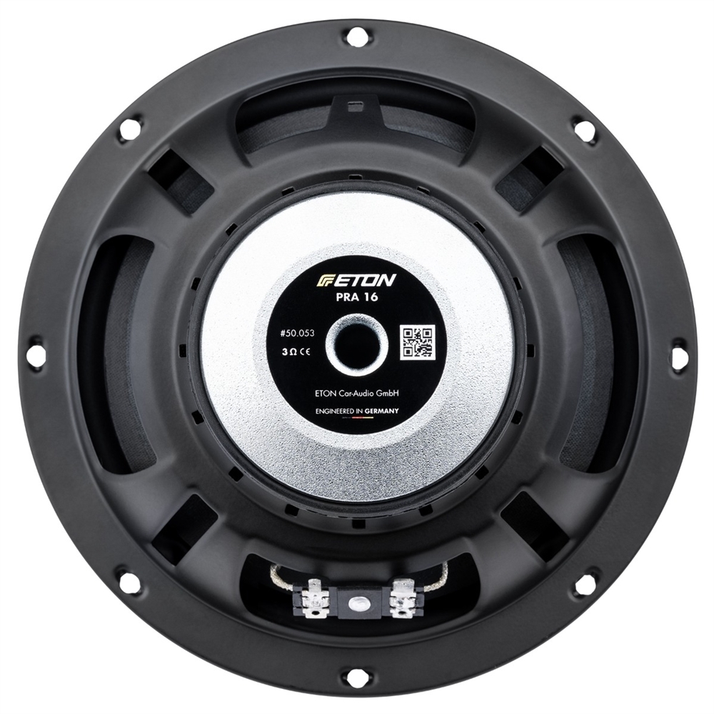Experience top sound in the entry-level class with the newly developed PRA cone technology! The rib-stiffened, paper-fiberglass cone is a real highlight and another ETON milestone in cone development. It is particularly light and also particularly rigid - both basic requirements for a good loudspeaker. Thanks to the rib stiffening, maximum torsional rigidity has been achieved. This ensures ultra-dynamic and powerful bass reproduction, extremely precise and to the point. The PRA series impresses with its warm, full-bodied sound character, rich vocals and incredible spatial depth!
