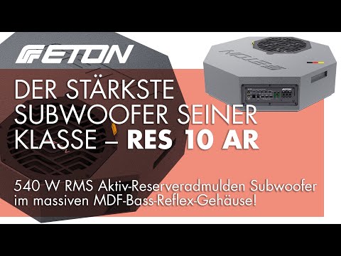 The next evolutionary step, the powerhouse for anyone who wants more bass in their vehicle – without any hassle, without losing space, hidden in the spare wheel well and 100% reversible: ETON's flat active subwoofer RES 10 AR replaces the RES 10 A, which has sold over thousands units and proven itself time and again – fundamentally redesigned in every respect. The RES 10 AR features a new, solid, additionally reinforced MDF wood bass reflex enclosure with a new surface coating. It also features an efficiency-optimized high-performance long-throw woofer and a powerful amplifier module with an incredible 540 W RMS and a dramatic increase in output of up to 10 dB at 40 Hz compared to its predecessor. The RES 10 AR is arguably one of the most powerful active subs on the market – high quality, engineered in Germany.