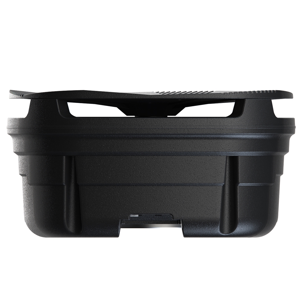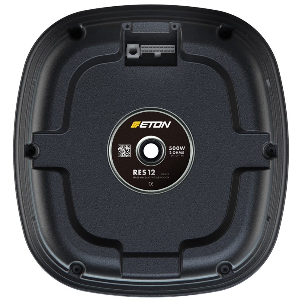 300 mm (12") active subwoofer for the inside of the spare wheel (from 15" rim size and more) or directly mountable in the spare wheel well. The new RES 12 in ETON Stealth design is simply screwed in the middle thanks to the special design and can thus be secured with the original mounting pin of the spare wheel. Thus, hidden bass is possible, but without having to do without the spare wheel! The extremely rigid aluminum diaphragm in combination with the strong ferrite magnet and the special double-bead result in hard kick bass full! In terms of low frequency response, the RES 12 also convinces, deep bass passages are no problem! The integrated active amplifier module provides a whopping 200 W RMS at 2 ohms and 500 W music power handling, high- and low-level inputs with integrated low-pass filter 50 - 100 Hz, phase shift via level remote control, auto-turn on function (SIG/DC), suitable for vehicles with start-stop function, dimensions (LxWxH) 341 x 321 x 164 mm, incl. mounting accessories and installation accessories, connection cable and level remote control.