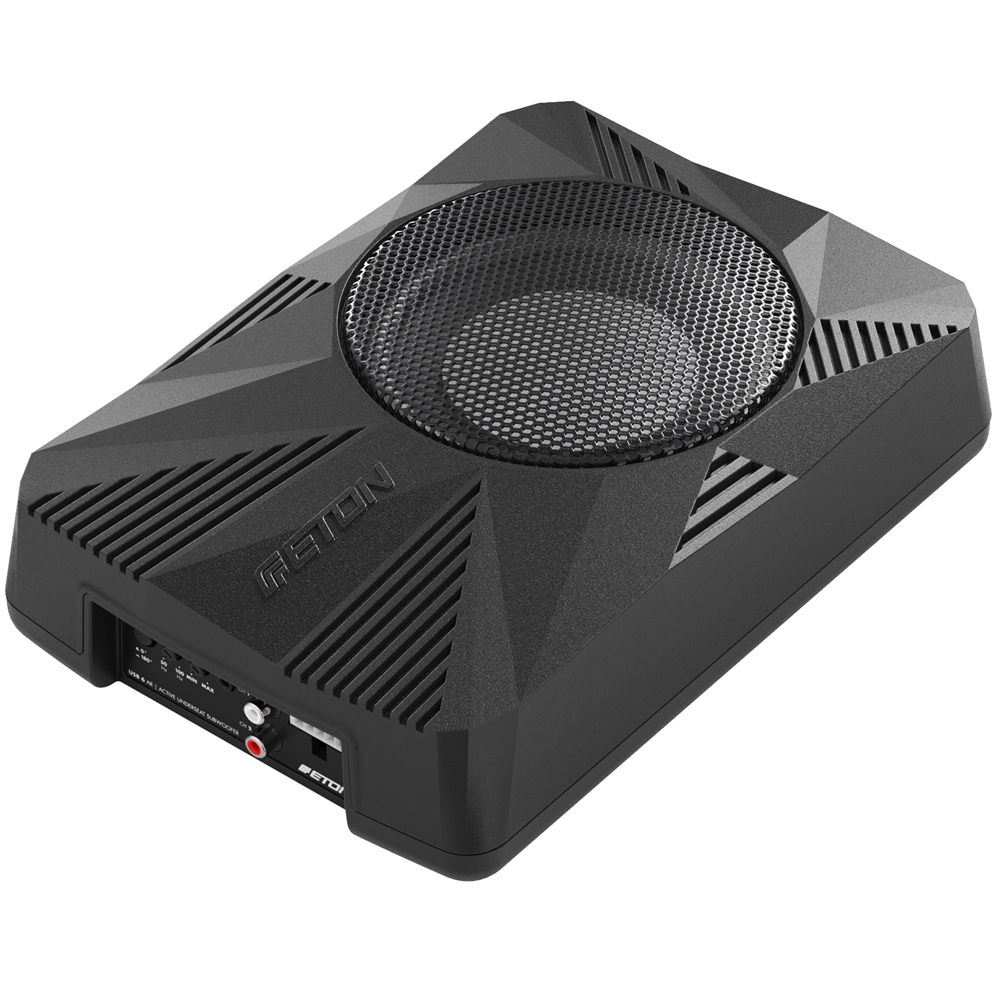 Since 2013, the USB series is an integral part of the product portfolio - a series with tradition. The problem solver when it comes to smart and frequently hidden bass, installed a hundred times in quite a few convertibles, camping or classic cars. The well-known USB series (Under Seat Bass) scores especially with its small size and the solid aluminum die-cast housing. Now the housing and the amplifier unit with the 150 mm (6") long-stroke driver has been reworked. The design already known from the ETON Stealth 7.1 DSP power amplifier was the inspiration for the new USB AR series. The solid aluminum die-cast housing became even stiffer and more resilient, thanks to the larger surface area, accruing thermal energy is better dissipated to the environment. The loadable 2 x 2 Ohm driver with double voice coil was adapted in the moving mass to the new housing and optimized. The revised active module can now be operated without remote control and delivers a whopping 160 W (2 x 80 W) of music power. Phaseshift and an integrated low-pass filter complete the package. Modern appealing design, German Engineering and top workmanship in smart dimensions of just 290 x 202 x 77 mm (LxWxH) - This is a subwoofer solutiuon how it works in 2022! In Sound We Trust.