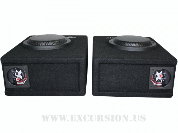 With the PX US65 we present a set of two 6.5 "bass reflex enclosures in mirrored design as an universal solution for all conceivable applications from under seat to under bed in the boat, camper or at home. Mostly optically appealing, thanks to the high quality embroidered EXCURSION branded logos, as right and left side housings. Fitting already in small vehicles often locked by means of a simple central base plate as an almost trunk extension or even more simply lying in the double trunk floor with Velcro fastener as offered by the sister brand Hollywood ENERGETIC as HVL in two sizes. This enclosure size a briefcase with side bass reflex ventilation is becoming more and more popular because of its versatile application and especially because of its unexpected performance.