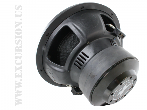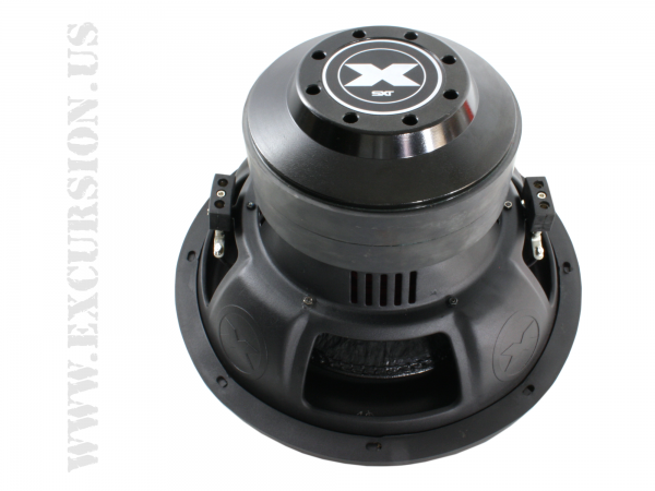 So we wind our proven and ventilated aluminum coil former with pure OFC copper up to a winding height of 45mm and result with this generation SXT already an outperform parameters of the several more expensive first generation SXE and SXX series and with comparably large motors. New requirements for centering are here in double execution with reinforced linear NOMEX centering perfectly locked in multiple screwed rings and blood red design. Color accents that repeat in the seams of the oversized high-density surrounds and lettering. Of course, all other known EXCURSION standards can be found in the SXT like our massive double 8GA/10mm² high current terminals and here with a 300oz dual stack motor which with a necessarily extended pole plate which oversized ventilation openings have the charm of a revolver that just wants to be charged.
