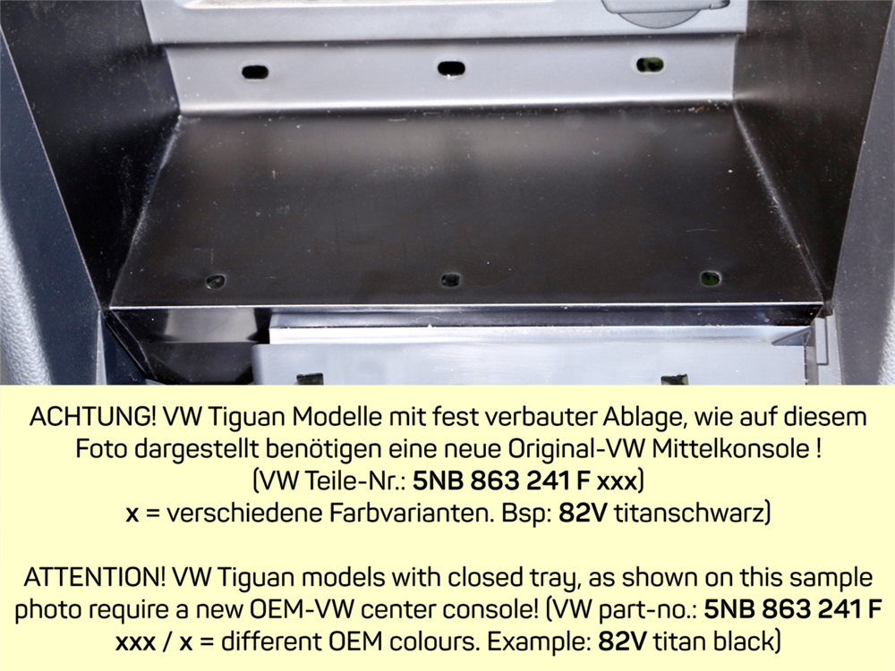 vehicles with closed tray require a new OEM-VW center console:
