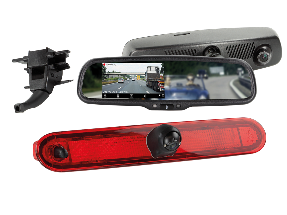 Extras: front full HD dash cam / DVR function / self dimmimg / automatically adjusts brightness of monitor / automatically switches on via trigger wire