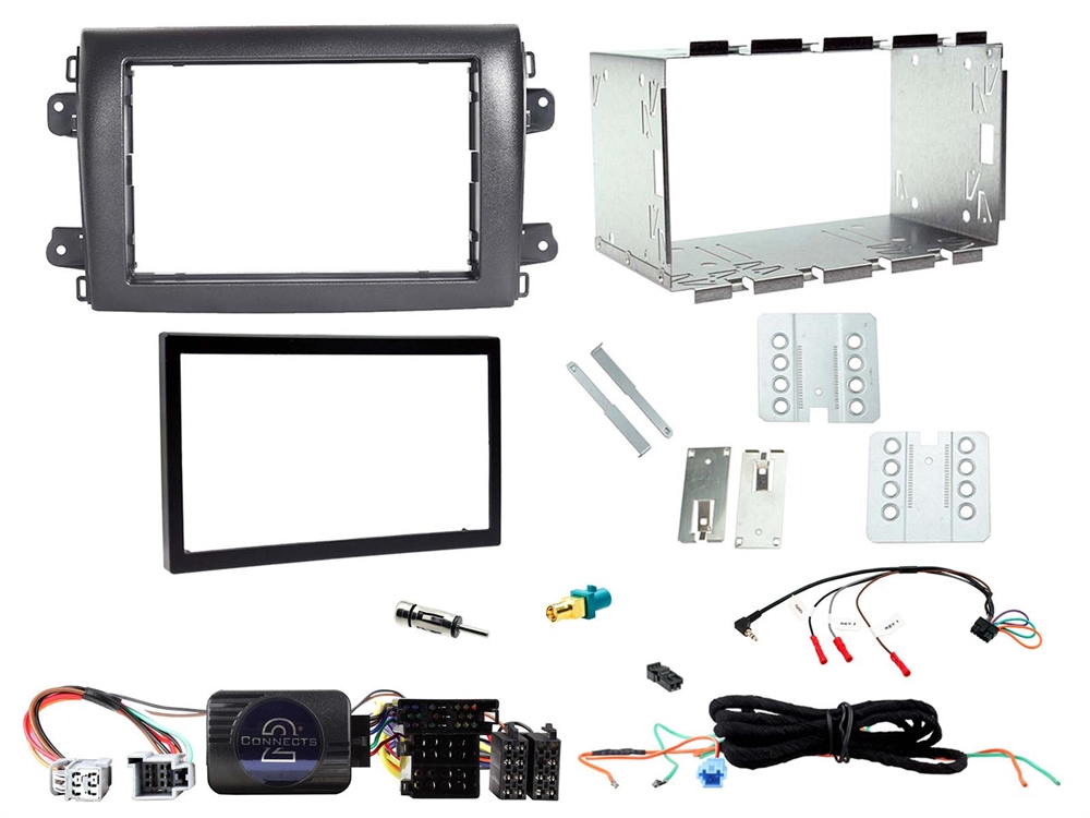 The CTKFT31 is a full install kit designed for use on the 2021 onward Fiat Ducato (8 Series). The kit comes with all you need to install an aftermarket head unit while retaining the use of your multifunctional steering wheel controls and phone button functionality. This kit includes a steering wheel control interface and harness, additional output lead for speed pulse and reverse, an FM antenna adapter, a DAB antenna adapter, a universal patch lead, as well as a double-DIN fascia adapter finished in black to retain the original vehicles aesthetics and includes all of the mounting accessories for fitment. Please note: this kit is for open dash vehicles only.