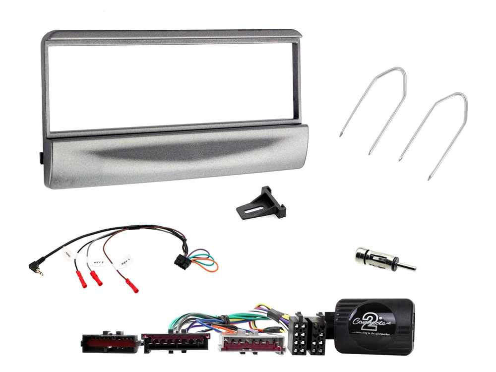 Ford Installation Kit. Supplied With Silver Single DIN Fascia, Resistive Steering Wheel Control Interface, Antenna Adapter, Release Keys & Universal Patchlead. *Note - Steering Wheel Control Interface Not Compatible With Ghia/ST Models