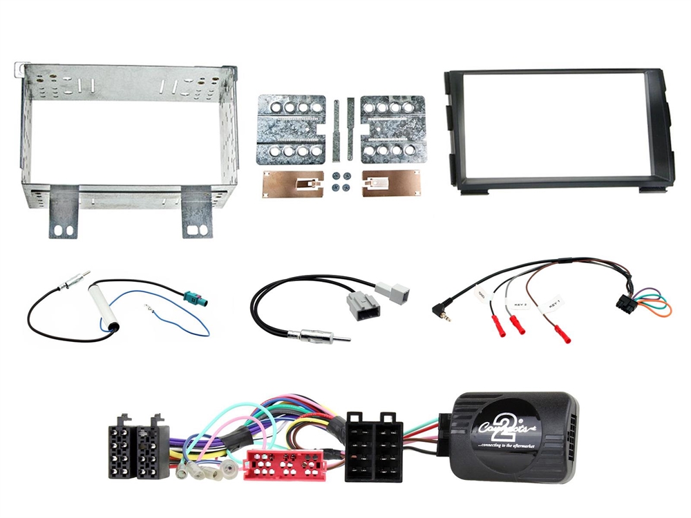 Kia Cee'd Installation Kit. Supplied With Black Double DIN Fascia, Resistive Steering Wheel Control Interface, FAKRA And Kia Antenna Adapters & Universal Patchlead