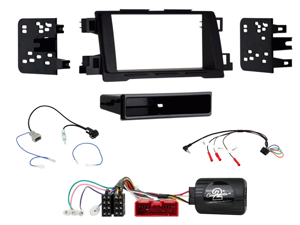 Installation Kit for Mazda CX-5 vehicles. This kit is supplied with a single/double DIN fascia panel, a steering wheel control interface, an antenna adapter and a universal patchlead. The interface that comes with this kit helps to retain factory features including your steering wheel controls whilst the fascia plate helps to re-create the OEM aesthetics of the vehicle. Note: this kit does not support time/date change or the temp. display.
