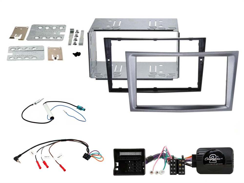 Vauxhall Installation Kit. Supplied With Charcoal Metallic Double DIN Fascia, CAN-Bus Steering Wheel Control Interface, FAKRA Antenna Adapter & Universal Patchlead