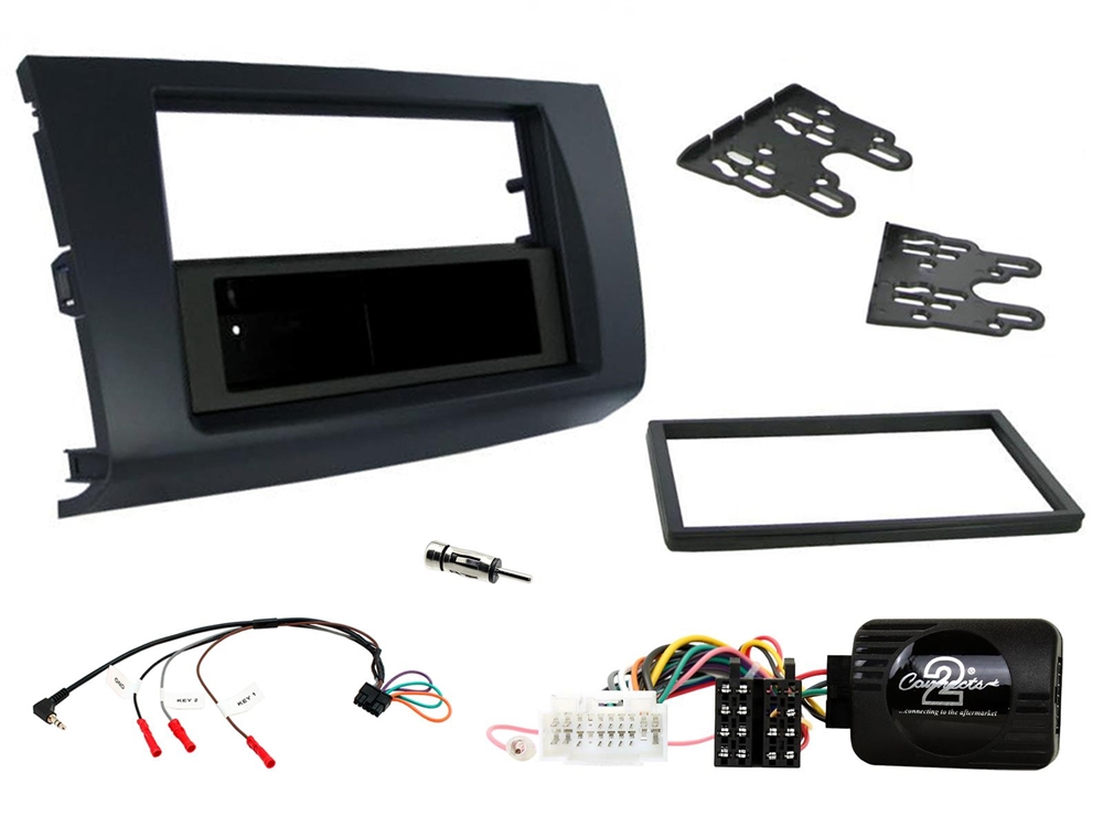 Suzuki Swift Installation Kit with single/double DIN fascia and steering wheel control interface. This kit allows you to replace the factory stereo of your vehicle whilst maintaining the original steering wheel controls and the look of the factory dashboard. Kit also comes with dedicated antenna adapter and a universal patchlead for various aftermarket stereos.