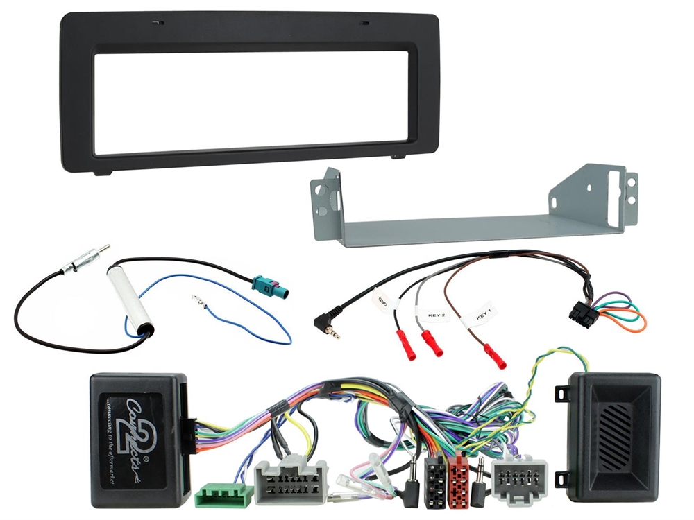 Volvo installation kit containing a single DIN fascia, antenna adapter, universal patch lead and a steering wheel control interface. Retain steering wheel controls, phone button controls, OEM aux, microphone and warning chimes/parking sensor audio with the CTSVL008.2. It also provides outputs for Park Brake, Reverse Gear and Speed Pulse. Upgrade to an aftermarket stereo with this complete fitting kit. *Note: Does not retain display features including vehicle menus and climate display. Does not support PDC audio.