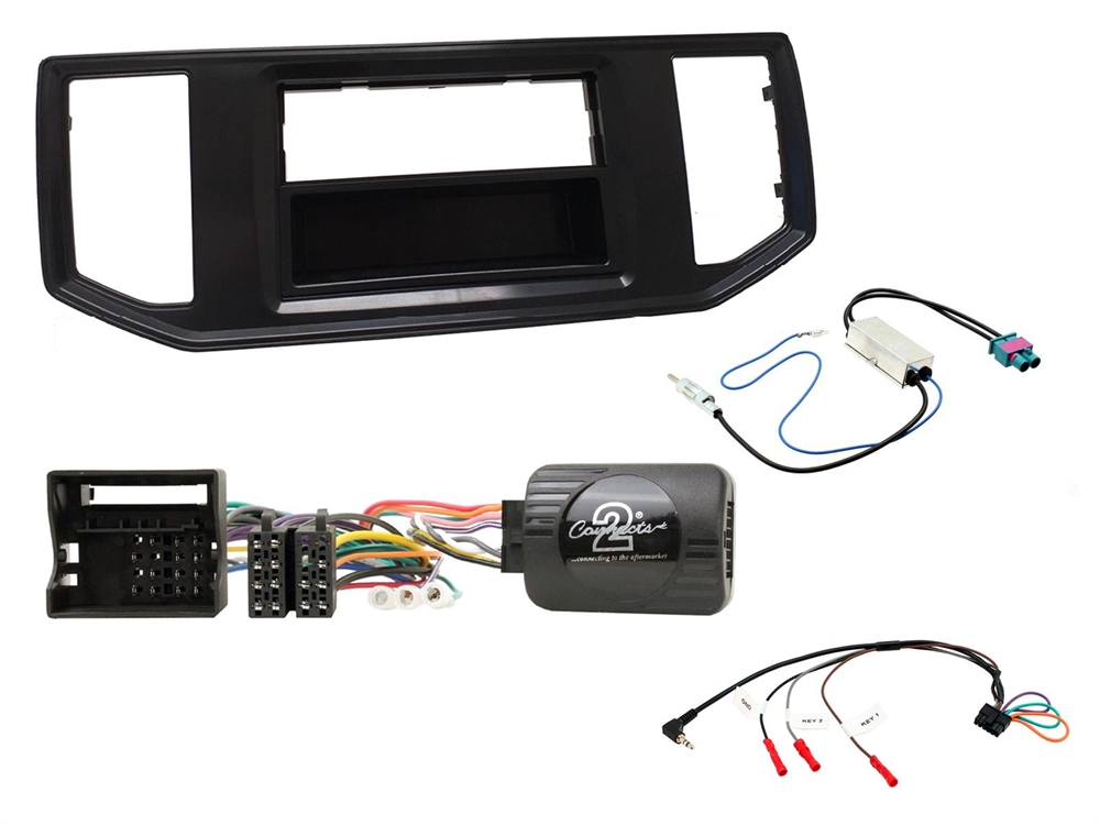 For single DIN head unit installation, including Alpine Halo units. Retains steering wheel controls, phone buttons . Provides speed pulse, park brake and reverse gear outputs. Finished in black (matt)