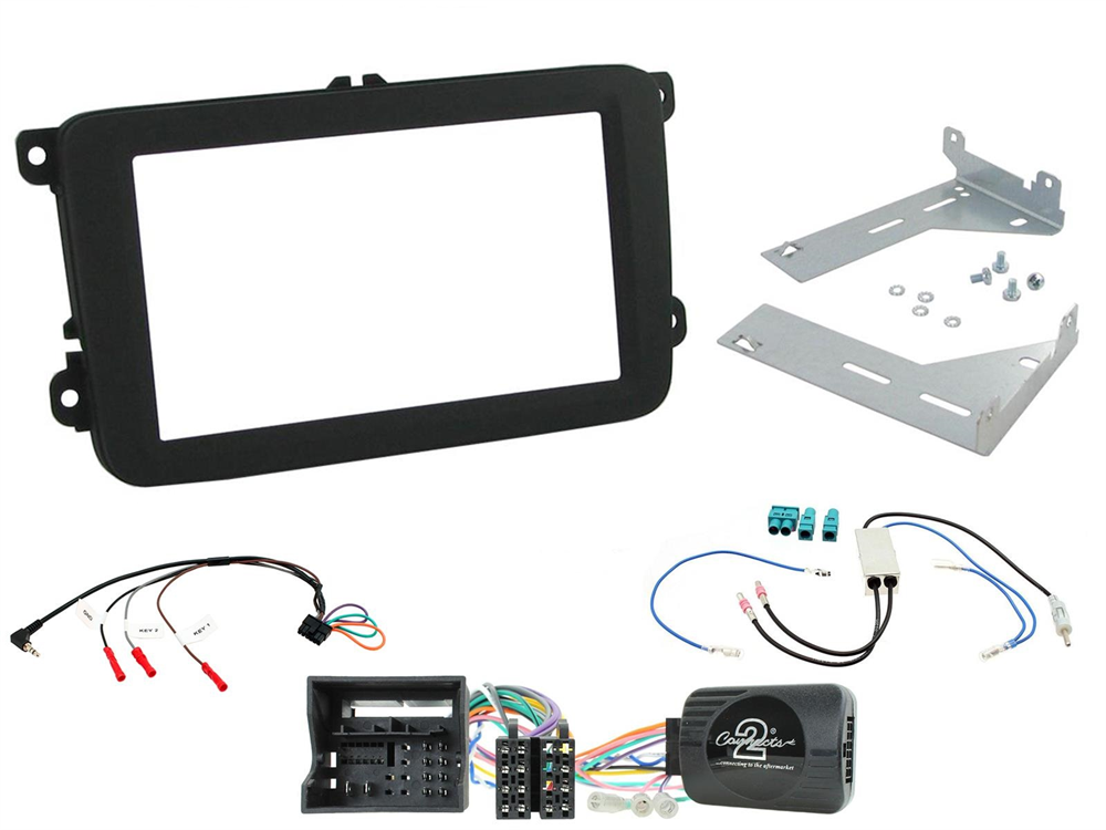 Fuldt installations kit til modeller med standart VW radio. 52 Pin quadlock stik bag radio (MIB-PQ) og 2 Fakra antenner. Både dobbelt og 2 enkelte fakra. (ikke til mørkeblå og rigtig grøn og gul da det er gps og usb).