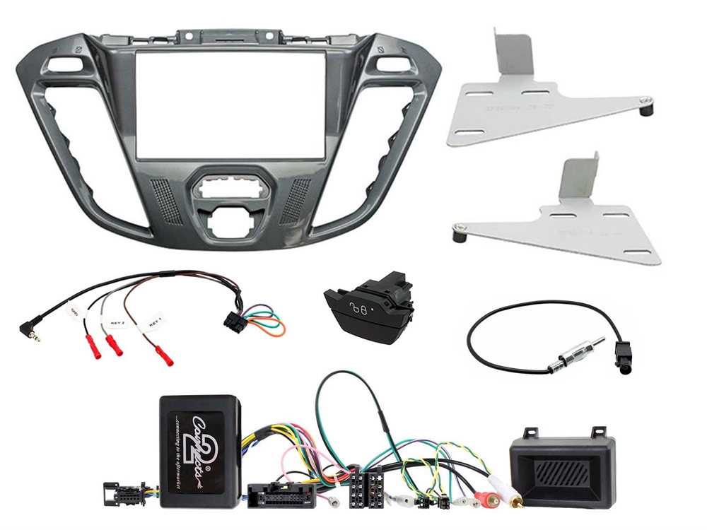 Ford Transit Custom Installation Kit. Supplied With Nebula Piano Optic Double DIN Fascia, CAN-Bus Steering Wheel Control Interface, FAKRA Antenna Adapter & Universal Patchlead *Note - Additional OEM Parts From Ford Required - 1799698 Jewels Lamp/Passenger Airbag Warning (If Passenger Airbag Fitted) or 1832265 Card Holder (If No Passenger Airbag) & 1519127 Hazard/Door Lock Switch