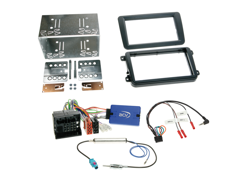 Fuldt installations kit til modeller med standart VW radio. 40 Pin quadlock stik bag radio og kun 1 Fakra antenne.
