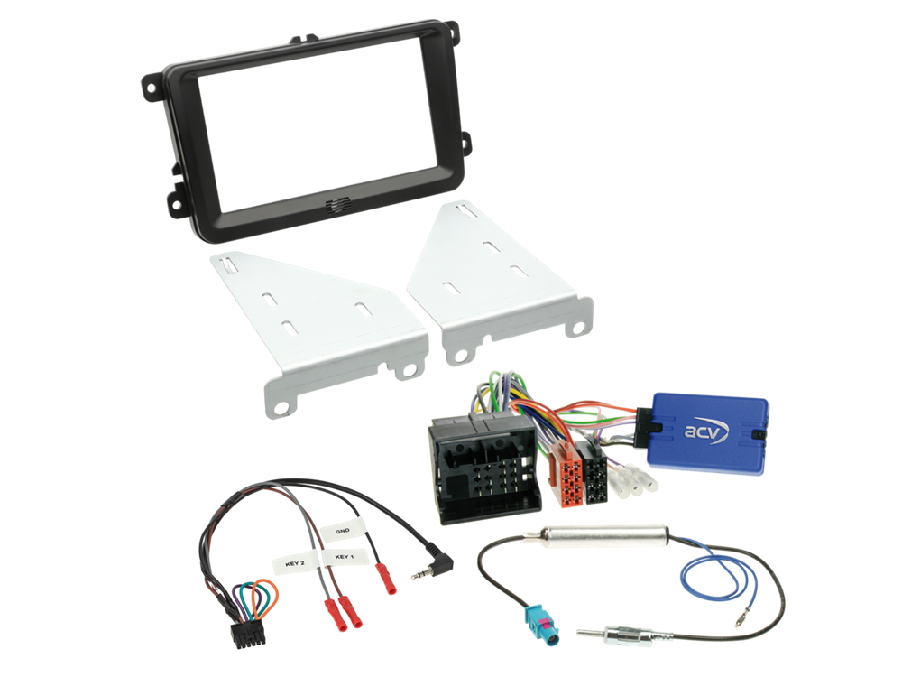 Fuldt installations kit til modeller med standart VW radio. 52 Pin quadlock stik bag radio (MIB-PQ) og 1 Fakra antenner. (ikke til mørkeblå og rigtig grøn og gul da det er gps og usb).