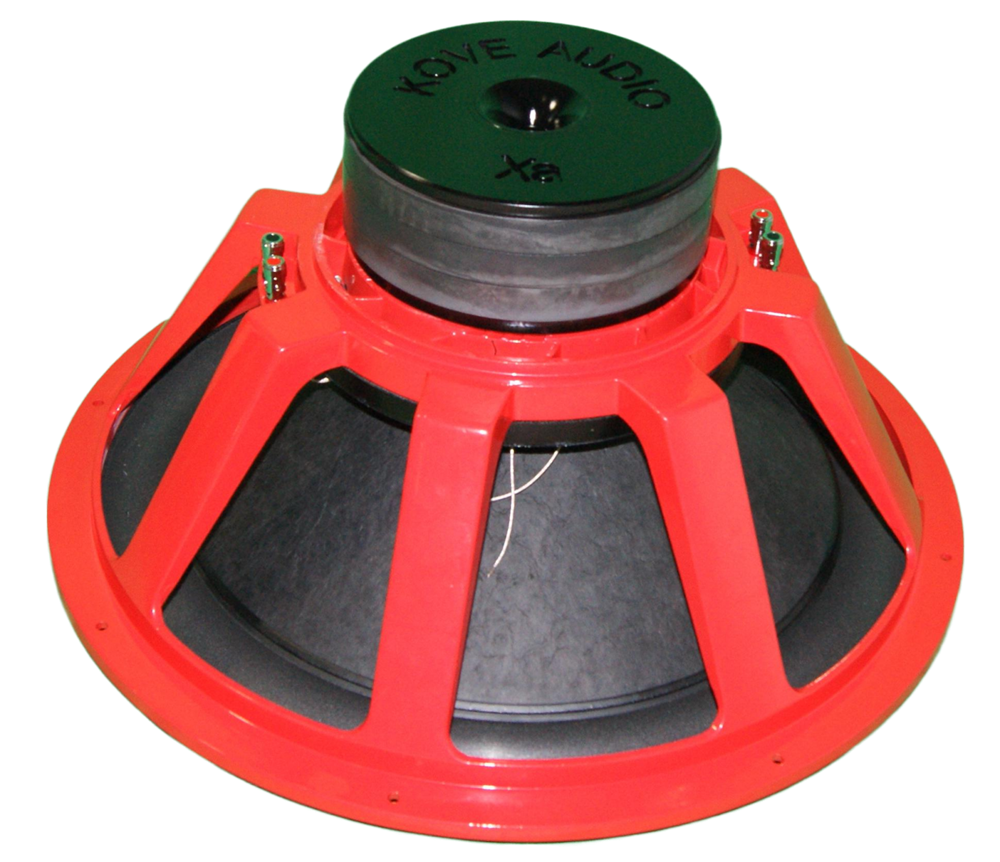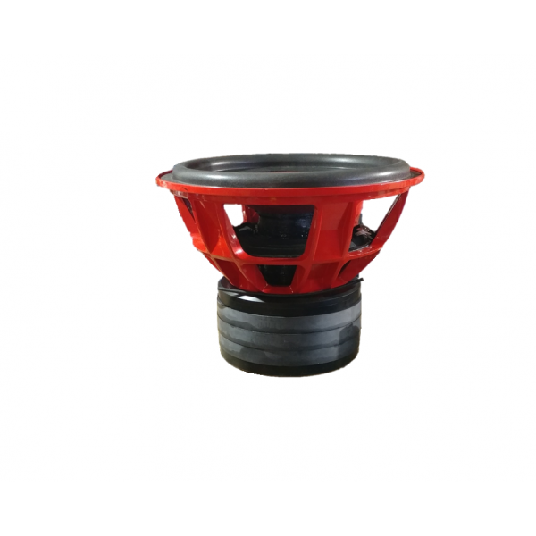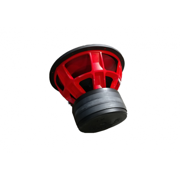 Woofer 54cm 5000W RMS og 20000W spl peak, Lav afstemning, Dobbelt 1 Ohm, 3,7” Fladviklet aluminium 70mm høj svingspole, 1000 Oz Motor, 4 x spider, lang vandring. stabil Glasfiber compound Membran, Støbt Chassis, KOVE Air-comp kølesystem. Optimeret til åbne og bandpass kasser.