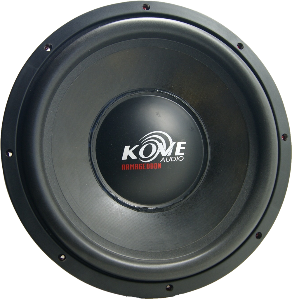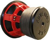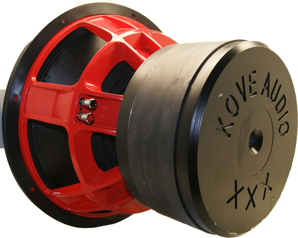Woofer 46cm 8000W RMS og 30000W spl peak, Lav afstemning, Dobbelt 1 Ohm, 4” Fladviklet aluminium 80mm høj svingspole, 1500 Oz Motor, 3 x spider, lang vandring. stabil Glasfiber compound Membran, Støbt Chassis, KOVE Air-comp kølesystem. Optimeret til åbne og bandpass kasser.