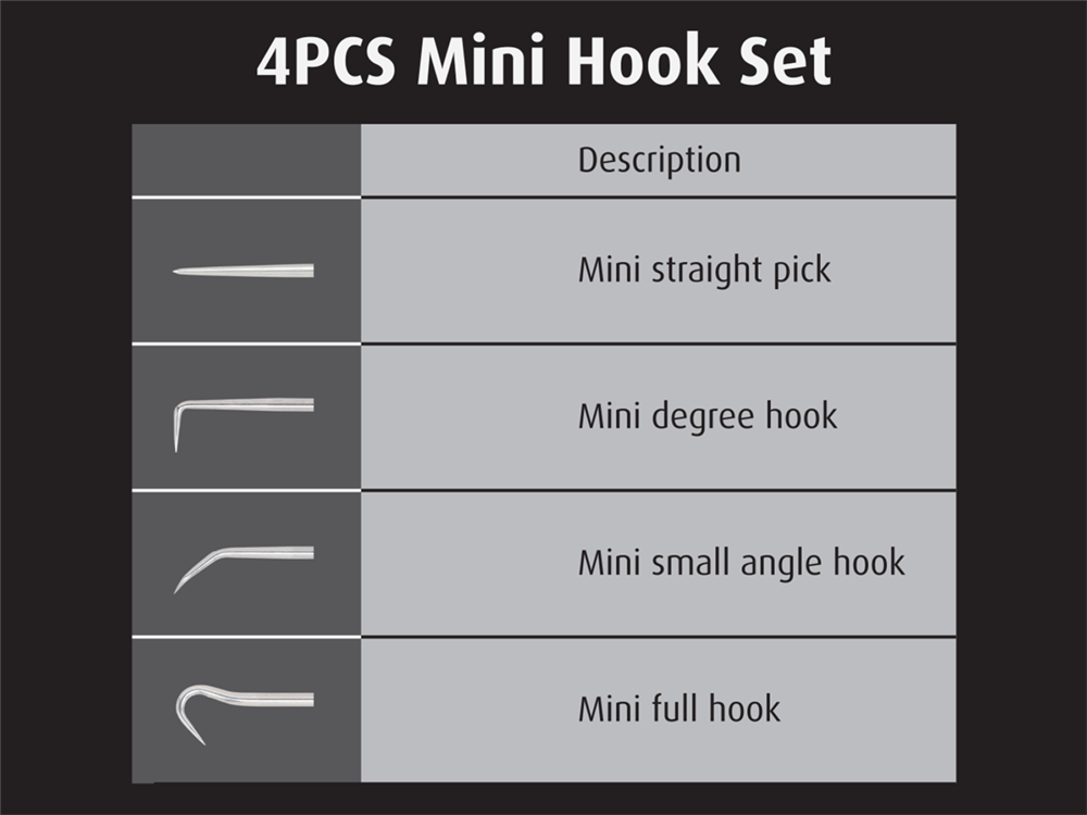Mini Hook for loosening blind plugs, cockpit trim, air vents or other trim parts in the vehicle.