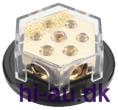 MONACOR 2 to 4-way cable distributor Forside » KABLER » STRØM/12V » SIKRINGSHOLDERE/FORDELERE » FORDELER Varenr.: CPD-6G DKKSEK PRIS ER PR. Stk Pris ved køb af 1 Stk,159,00 DKK På lager hos os 4-way distributor, cable inlet: 2 x Ø 12mm, 4 x Ø 8mm, insulated version, gold-plated, hexagonal housing. Dimensions: Ø 80mm x 30mm.