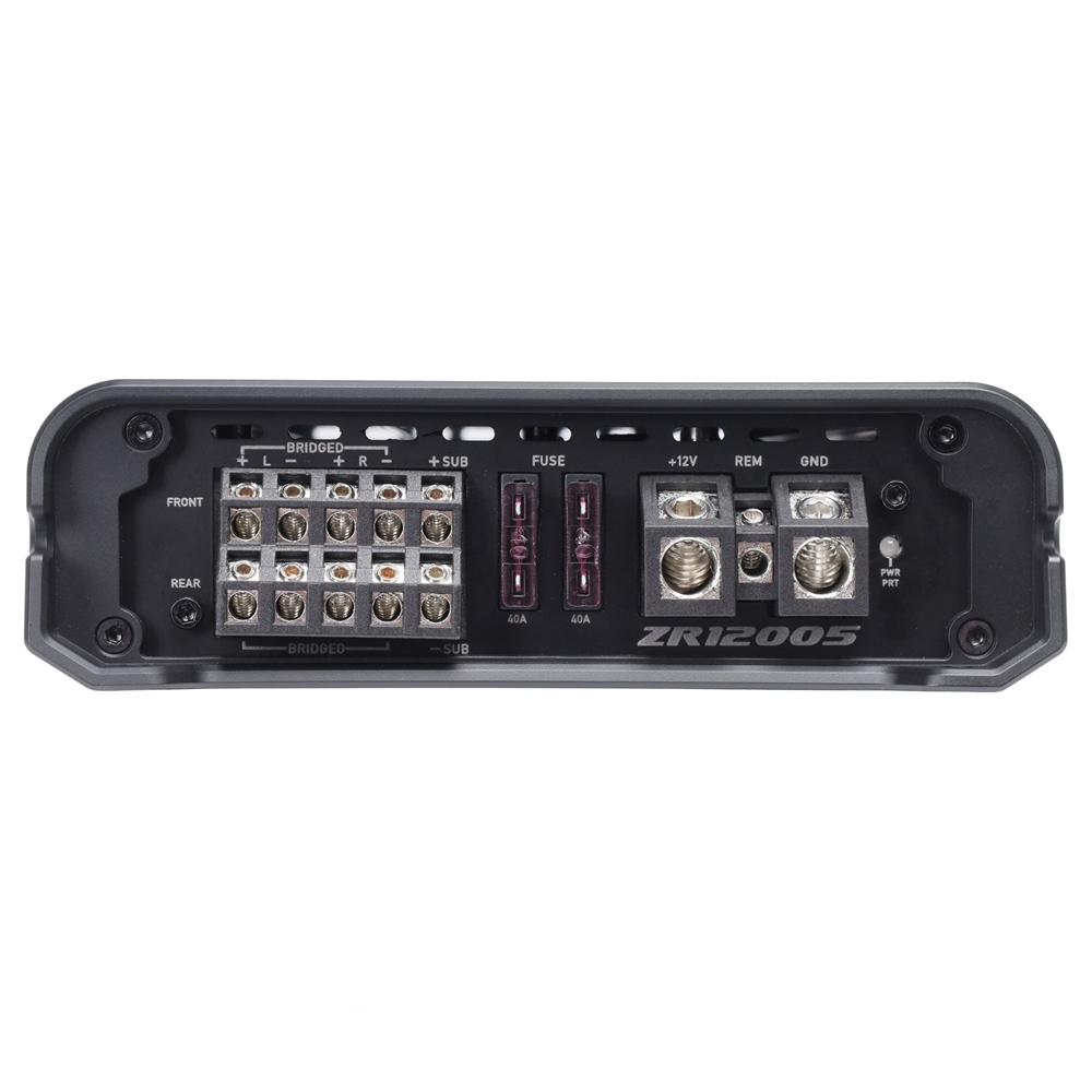 The ZR12005 is a powerful 5-Channel Class-D Amplifier with a fantastic compact design suitable for even the smallest of installs. Featuring massive power, the ZR12005 uses its high-grade connection terminal to ensure a clean crisp power delivery to all your components.